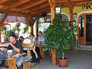 Nyáron, árnyas teraszunkon kínálunk felüdülést a megfáradt utazóknak.